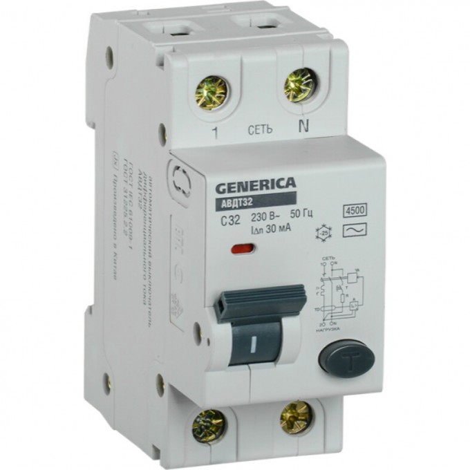 • Автоматический выключатель дифференциального тока IEK GENERICA АВДТ32 C32 - MAD25-5-032-C-30